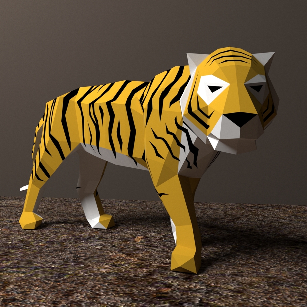 Tiger Standing Low poly Papercraft DIY Template Pattern New year Figure