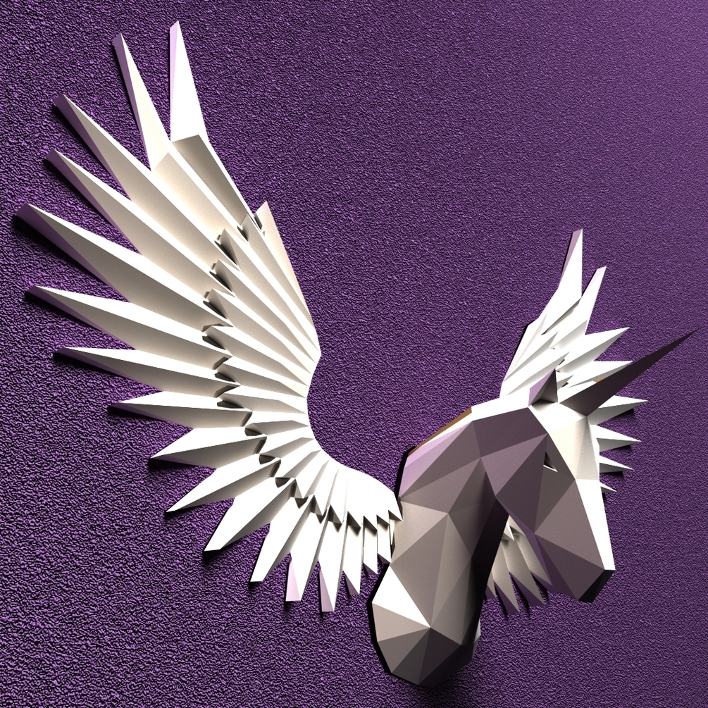 Wings & Unicorn Low poly Papercraft DIY Template (PDF + DXF)