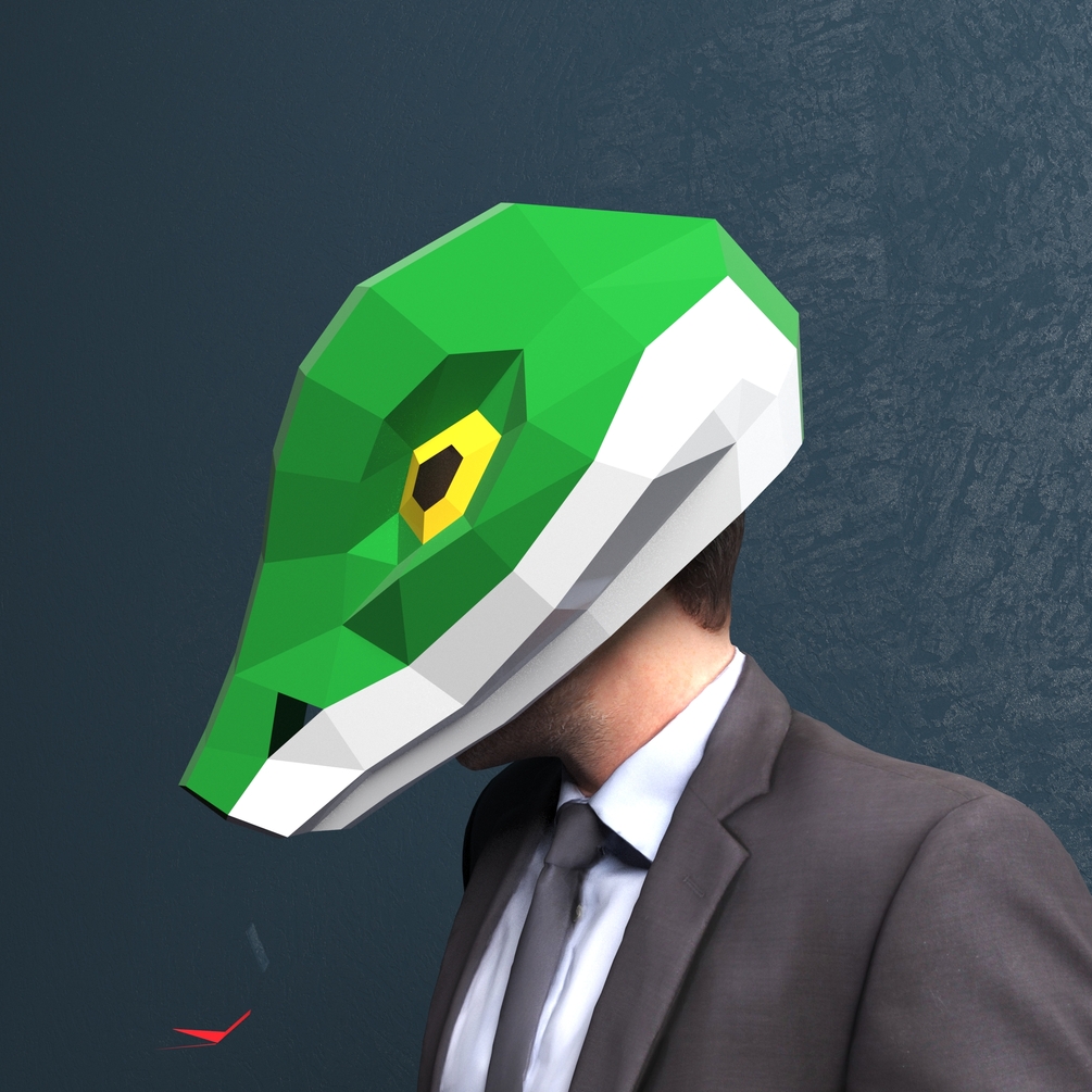Mask of Snake Low poly Papercraft DIY Template Pattern New Year Carnival